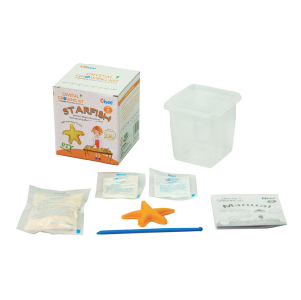 A crystal growth kit to make a yellow crystal starfish. Attached a three-dimensional formed mold which can grow suspended in the container.